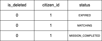 "m.is_deleted = 0 and m.citizen_id = 1"가 일치하는 레코드는 3개이고 실제 테이블을 읽어 3개의 레코드를 가져왔다. 하지만 그 중 "status = 'MATCHING'"에 일치하는 레코드는 1개 뿐이다. 우리는 디스크 I/O를 줄임으로써 쿼리의 성능을 높여야 함에도 불필요한 레코드 읽기가 발생한 것이다.