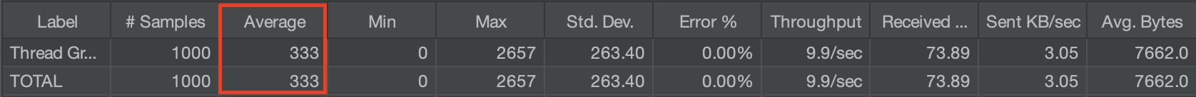 100명의 유저가 100초 동안 생성되고 요청을 10번 반복하는 테스트를 진행한 결과, 평균 응답속도가 333ms로 94.32%만큼 성능이 향상되었다.